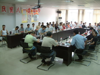 2006年8月1日下午,“陽光華庭”二期會議室歌聲飛揚,歡聲笑語,集團公司“慶祝中國人民解放軍建軍79周年”活動隆重舉行。全公司共50多名復員退伍軍人共同參加了此次活動。集團公司副總裁張志興、黨委書記譚邦強、物管公司有關領導出席了此次活動。